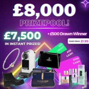£500 drawn winner plus over £7,500 worth of instant prizes!!